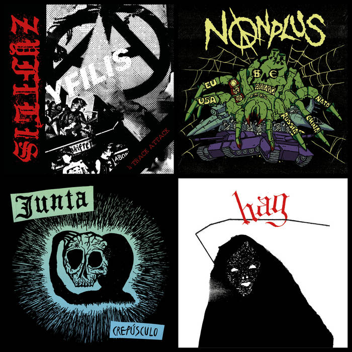 This is a Scandinavian hardcore compilation with four bands each contributing an EP’s worth of new material. The emphasis is on fast, raw hardcore, but each band brings a distinct take on the genre. Zyfilis sees snarled vocals over white noise guitars and lacerating leads. Nonplus is swirling, raging d-beat that literally wants to stomp you into submission. Junta exude a quiet desperation and deploy a sludgier groove to pulverising effect. While Hag have a more contemporary hardcore styling that brings the album to a swaggering, raucous finale.
